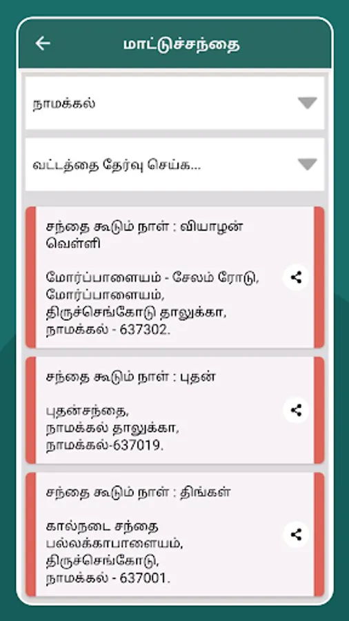 Cow Market (மாட்டுச் சந்தைகள் / உழவன் சந்தை) - In this category, information about complete cow market in Tamilnadu are given. One can search for a hospital using district and taluk names.