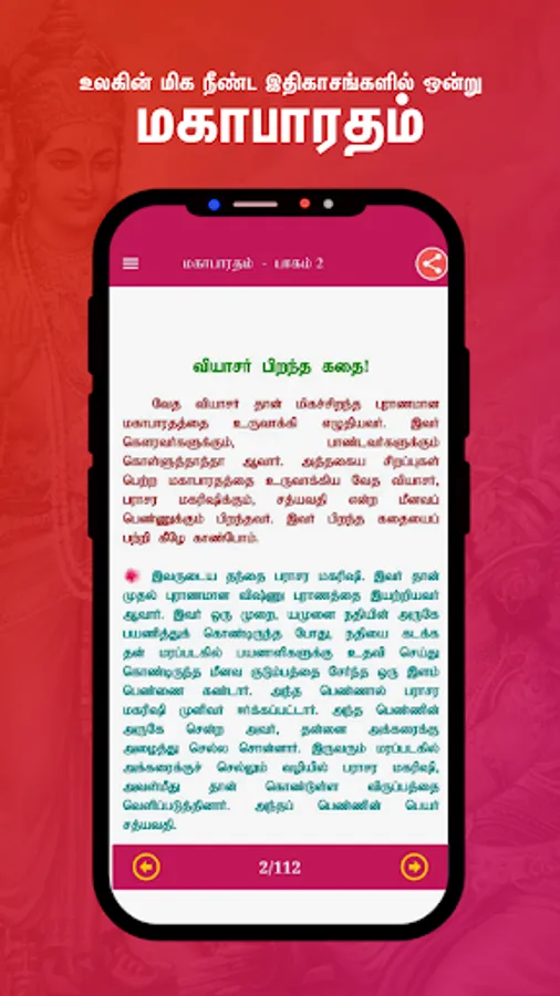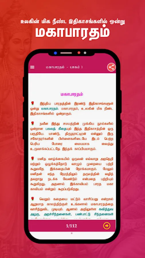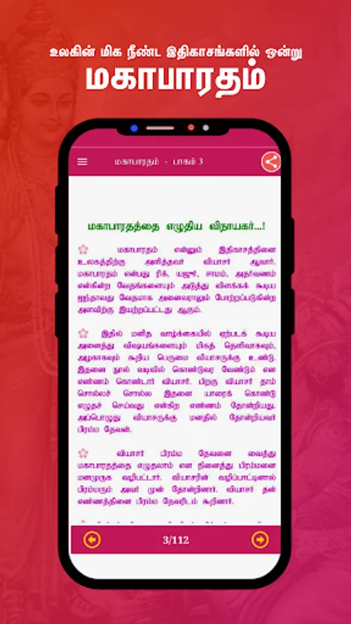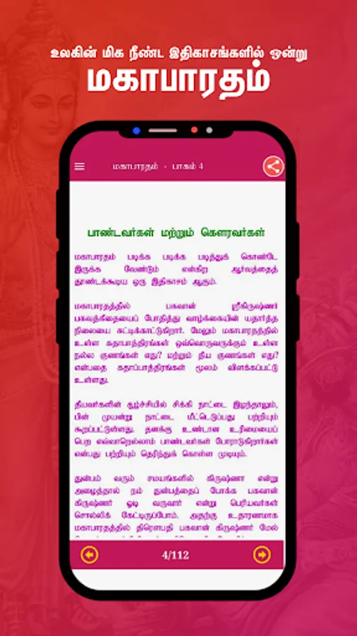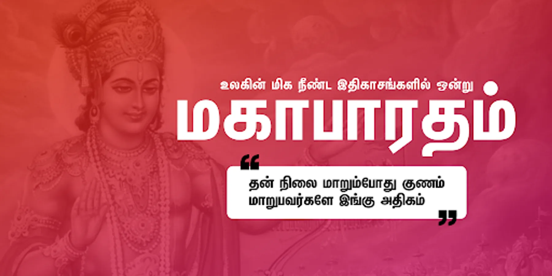 Mahabharata (மகாபாரதம்) - Completely free app that portrays the epic story of 'Mahabharata' in Tamil. As Mahabharata is a great Sanskrit epic of ancient India and longest epic poem ever written in Indian Mythology, it’s very important to know about this epic - Mahabharata Story in Tamil.