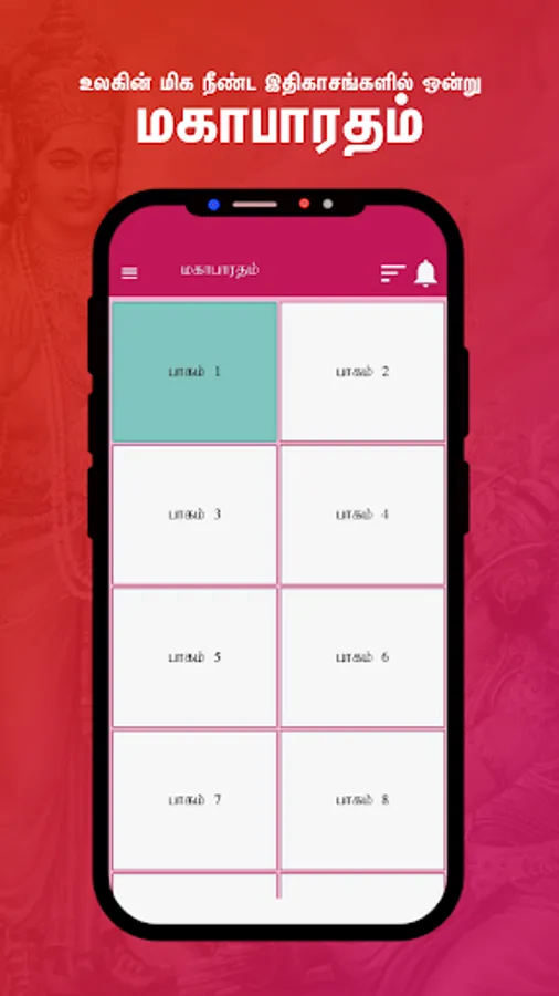 இந்த மாபெரும் இதிகாசமானது நீங்கள் எளிதாக படிக்கும் வகையில் நமது செயலியில் பாகம் பாகமாக பிரித்து கொடுக்கப்பட்டுள்ளது.