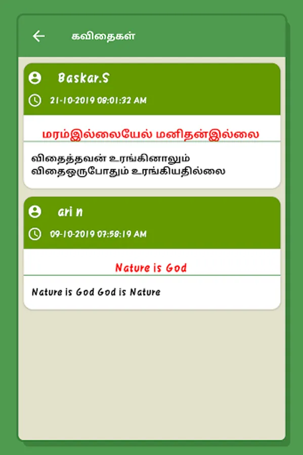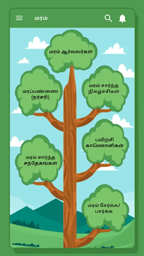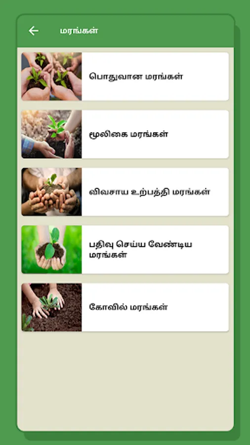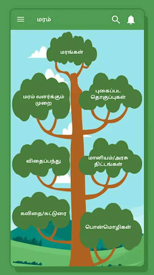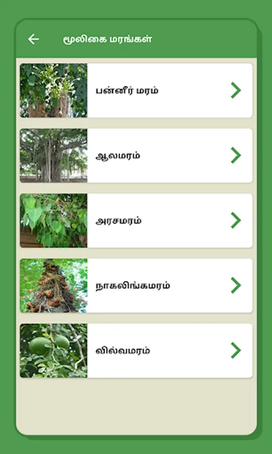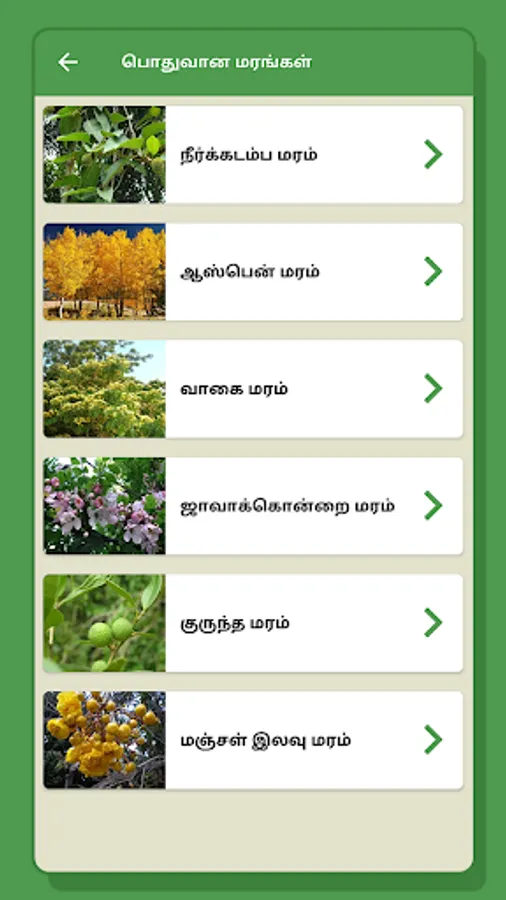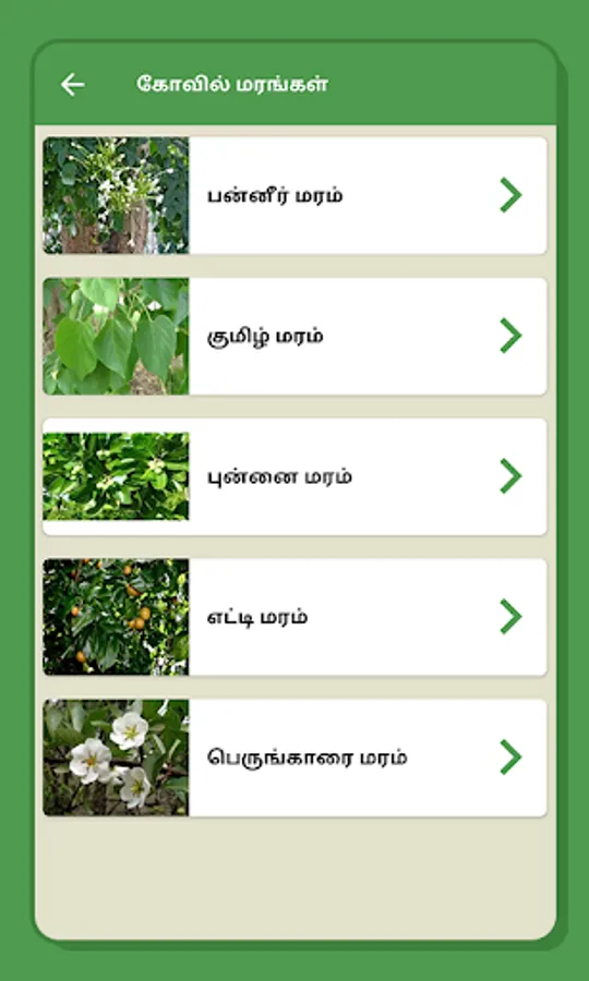 You can easily scroll through the various categories in this offline trees app in Tamil app.