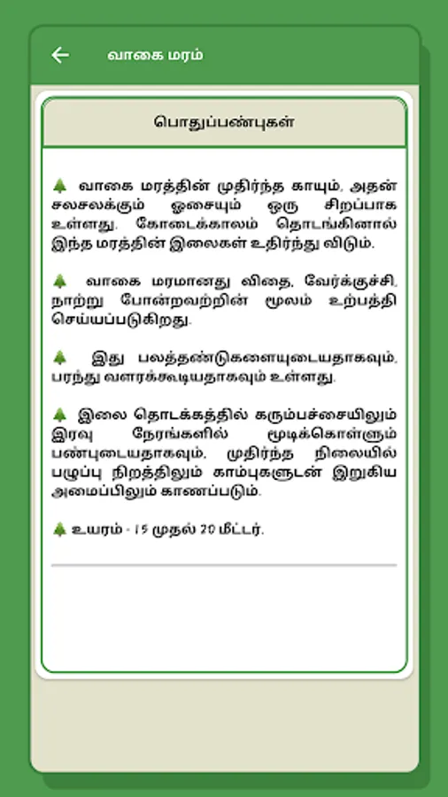Treepedia app is a free Tamil app to know about all kinds of trees grown in India and their greatness to human beings.