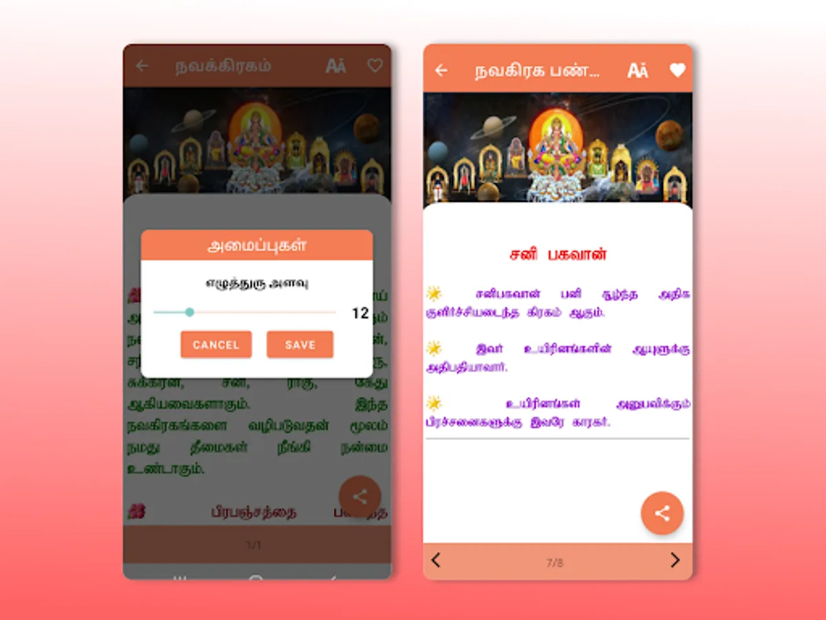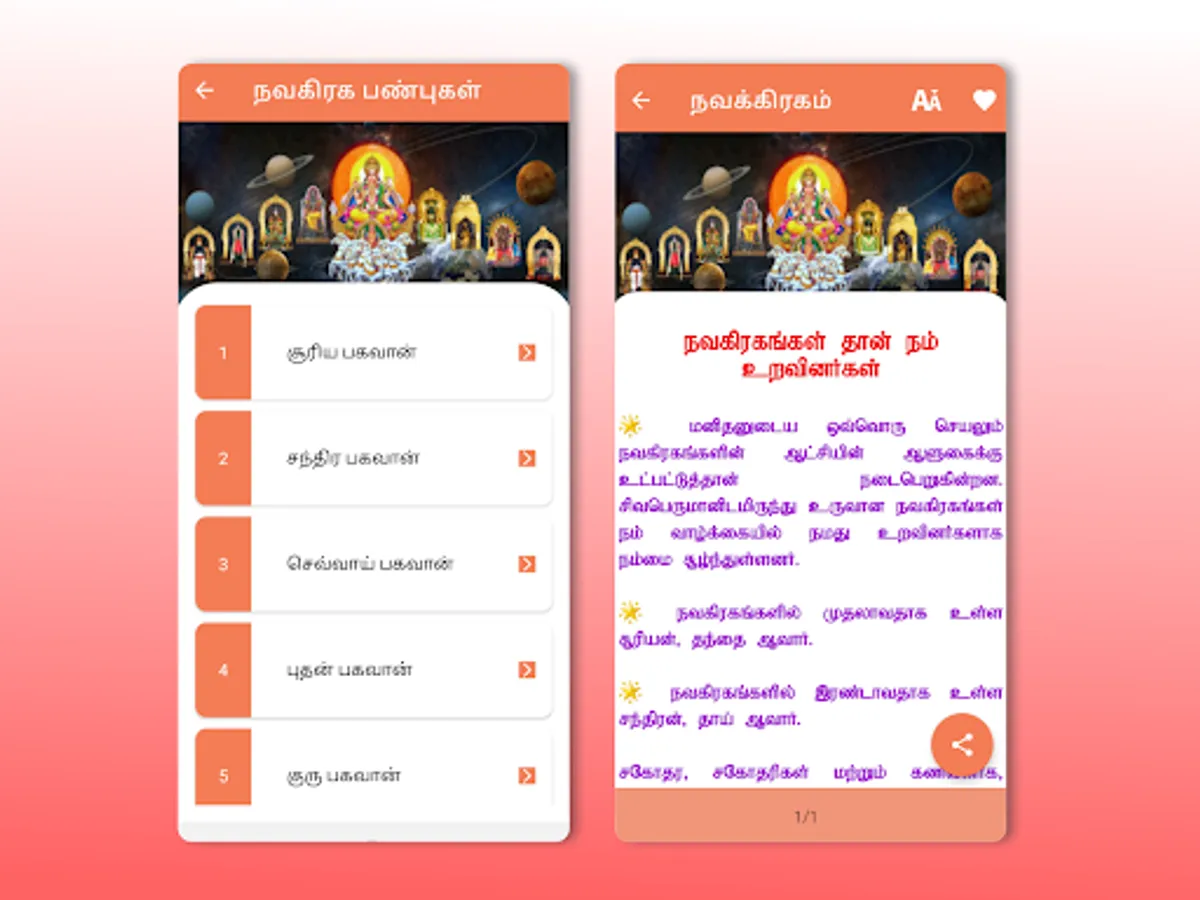 This Navagraham app is intended to benefit the users. Later period, people will carry a Navagraha book for reading. But now, you can read it on your mobile phone itself. This app provides detailed information about Navagraha.