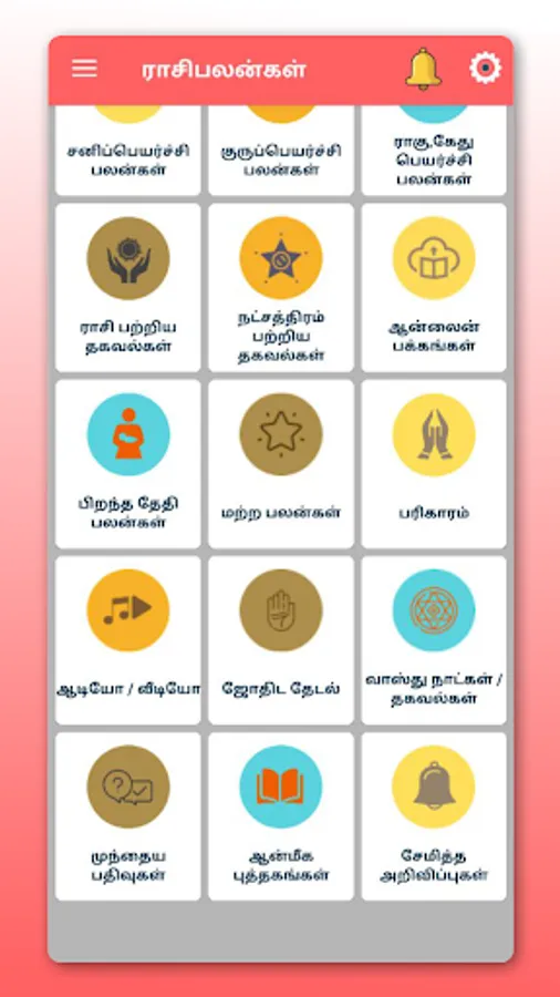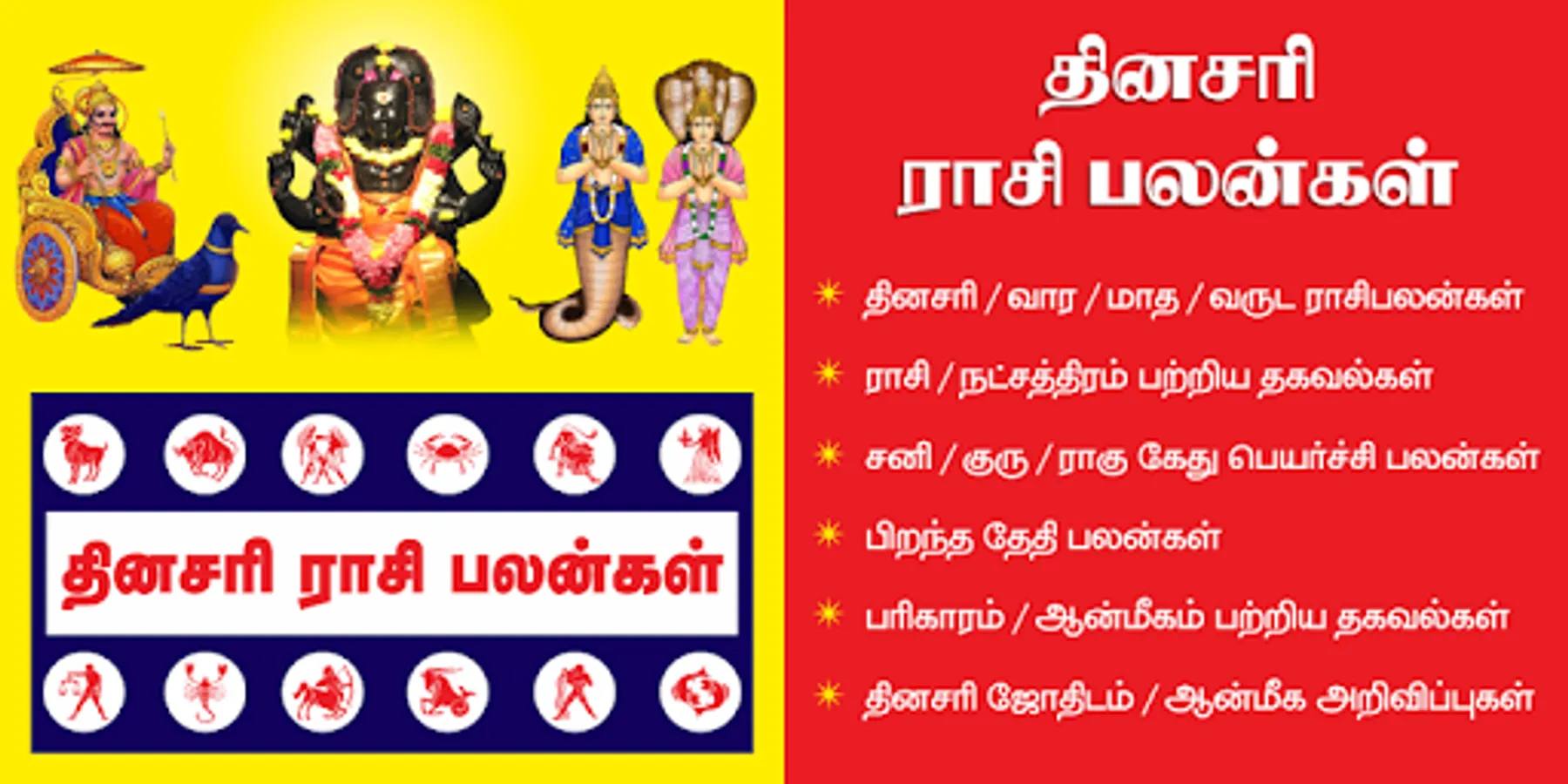 💫 Daily Tamil Rasipalan 2023 app provides complete details for Daily rasipalan, weekly rasi palan, monthly rasipalan, new year rasipalan, 2023 guru peyarchi palan, 2023 sani peyarchi palangal and ragu kethu peyarchi palan 2023.