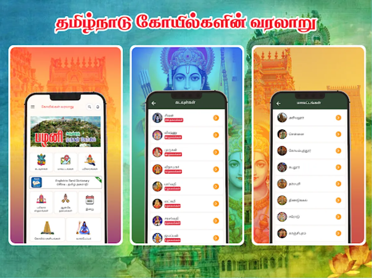 Tamil temple history / kovilkal varalaru app contains which temple is more powerful, when to visit the temple and all important days, etc all detailed information on each god worship.
