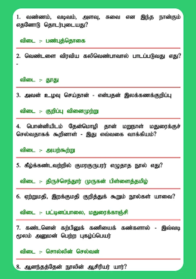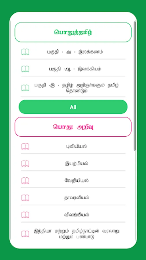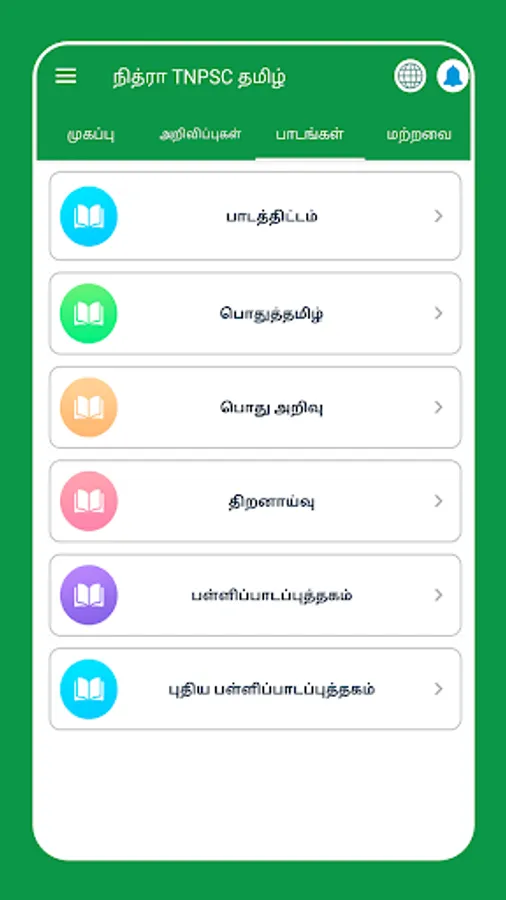 The notes and the questions in this Tamil TNPSC CCSE IV app are prepared by the experts of the concerned field based on the prescribed syllabus of the TNPSC exams like CCSE, Group1, Group1A, Group2 (CCSE II), Group2A, Group4, VAO and CCSE IV