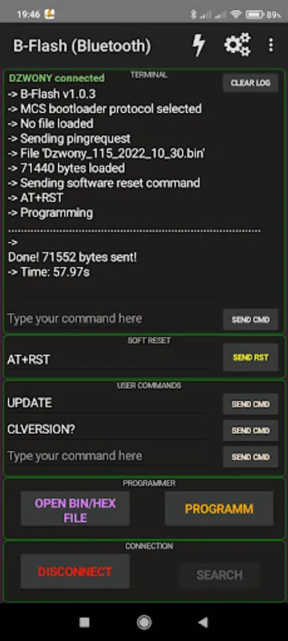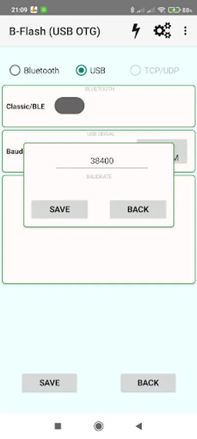 The application in the DEMO version provides terminal functions via Classic Bluetooth (eg.HC-05), Bluetooth LE (eg.HM-10) or USB OTG via serial converters CP210x, FTDI, PL2303 and CH34x.