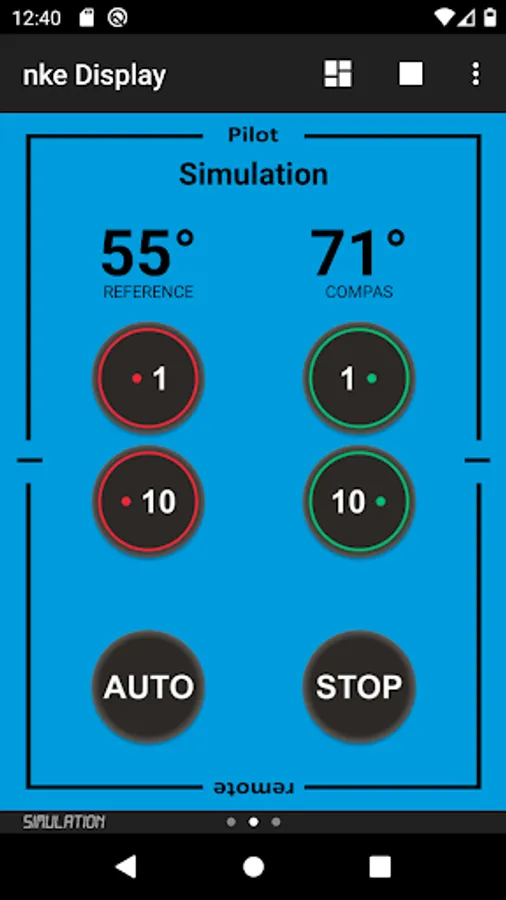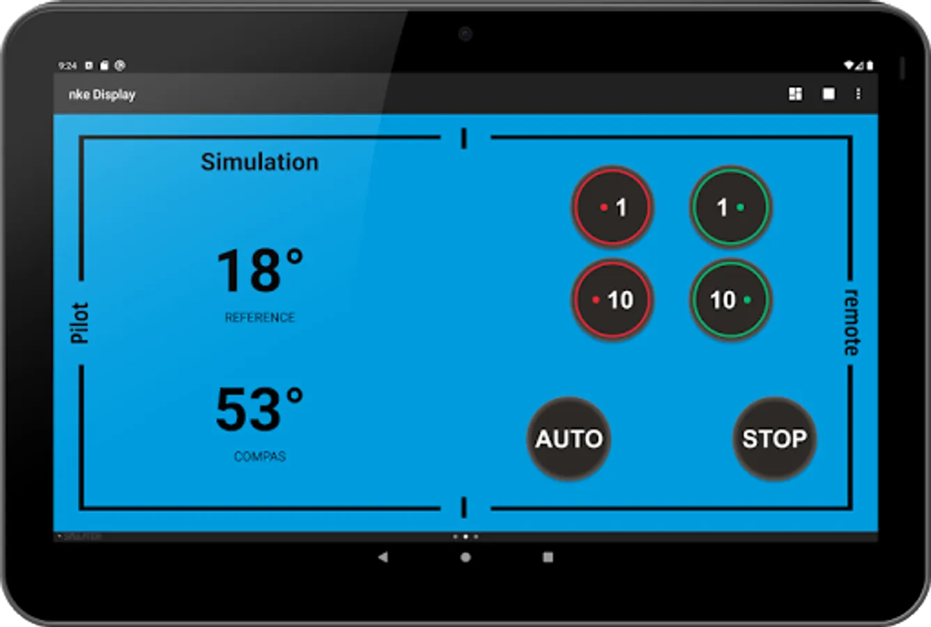 nke Display is an application for displaying and recording data from the nke bus on an Android smartphone or tablet. You can choose the data to display to personalize your dashboard. Remote controls grouped together in the Premium functionalities (in-app purchase) allow to control the pilot (auto, stop, +1, -1, +10, -10, change of mode) and to modify the display of the screens (page and ok keys, up - down - left - right block, A - B - C - D shortcuts).