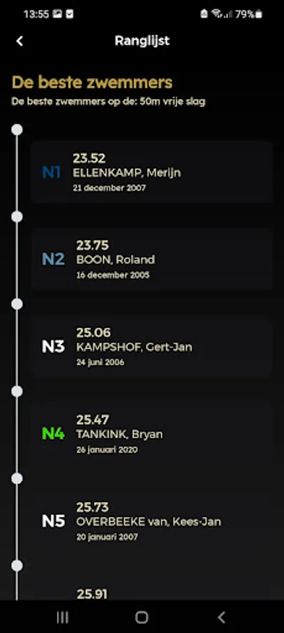 Thanks to the user-friendly interface and a direct link with SwimRankings, you can be sure that your results will always be processed in the app!