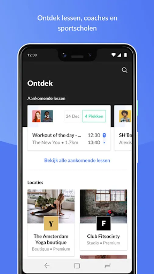 Don't want to buy individual lessons all the time, but want to exercise more often somewhere? Then you can sign up with your favorite coach, studio or gym. You then simply buy a strip card or subscription via the app and use it to sign up for the lessons.