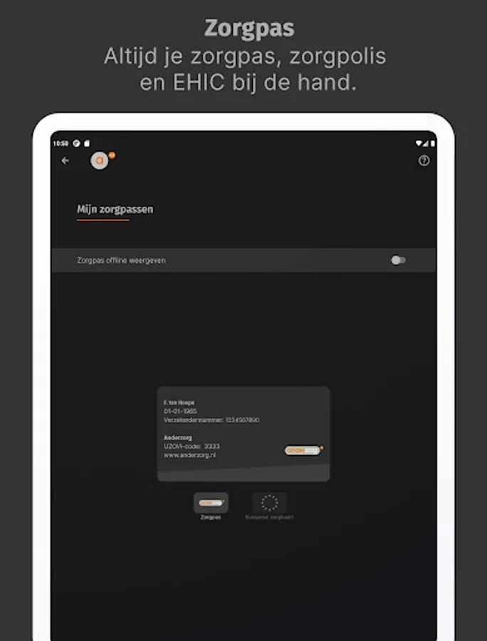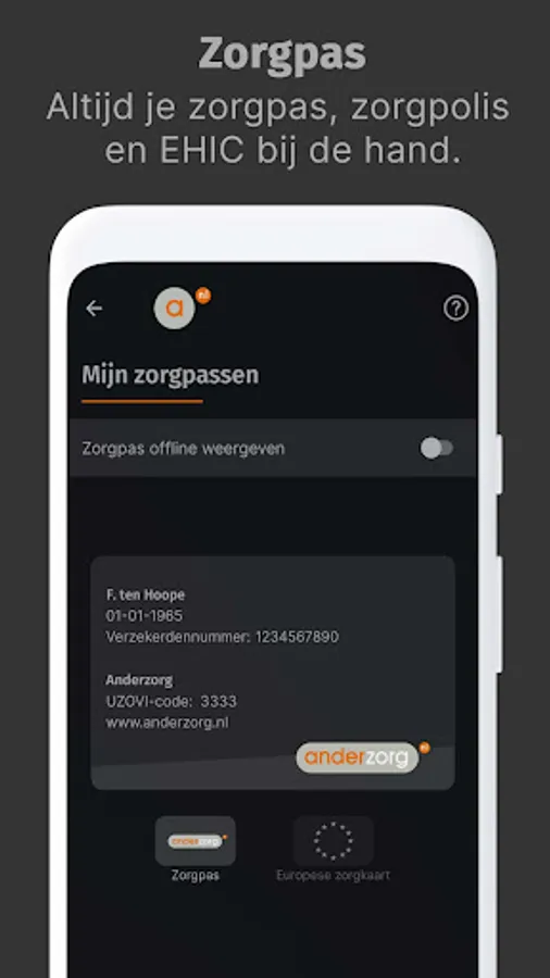 And because your smartphone more to you than your wallet, we have put the health card in your app. Also available offline. Handy!