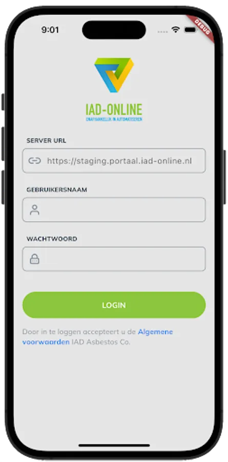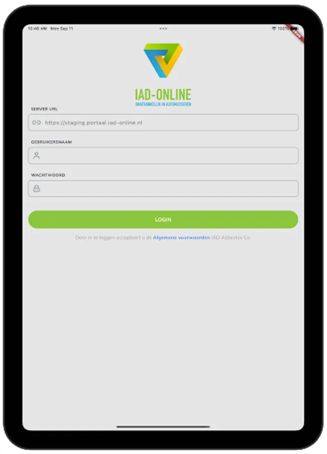 To use the IAD-Online app, you must use the IAD-Online system. As an inventory company you can register at https://www.iad-online.nl. The App can be used for offline inventory of Asbestos on location.