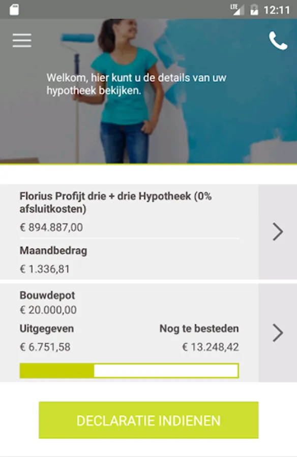 Pay attention! Do you have an existing mortgage at Florius? Then you can see next to your mortgage data also submit your building deposit invoices and extra repayments on your loan (s). Would you use other features of mijnFlorius? Log in via the website.