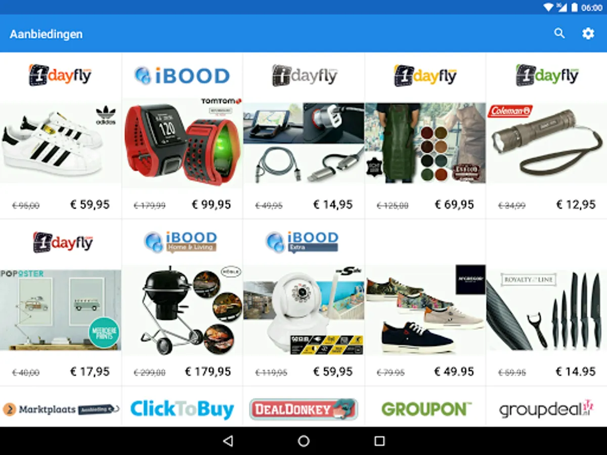 All include, 1DayFly, iBOOD, Groupon, Bol.com, ClickToBuy, Wehkamp, Marktplaats, Blokker, jouwaanbieding.nl and MediaMarkt.