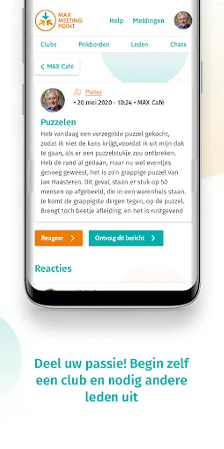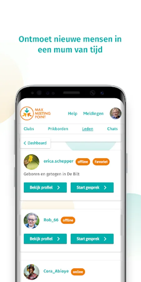 MAX Meeting Point from Omroep MAX is the safe app to easily meet people online. Omroep MAX shows people over 50 as they are: often very active people, involved in their environment and fully part of modern society. With MAX Meeting Point we offer you a platform to get in touch with other people over 50, and possibly to meet together or in a club.
