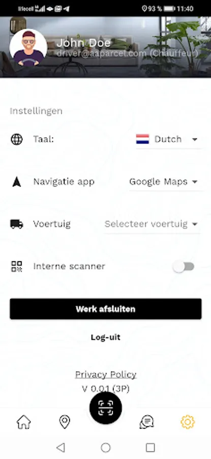 Scan registration delivery and pickup App from Aaparcel BV. Manage your own logistic network with our unique whitelabel Transport Management System (TMS), Multi-carrier booking portal and fully automatic Planning- & Route optimization tools.