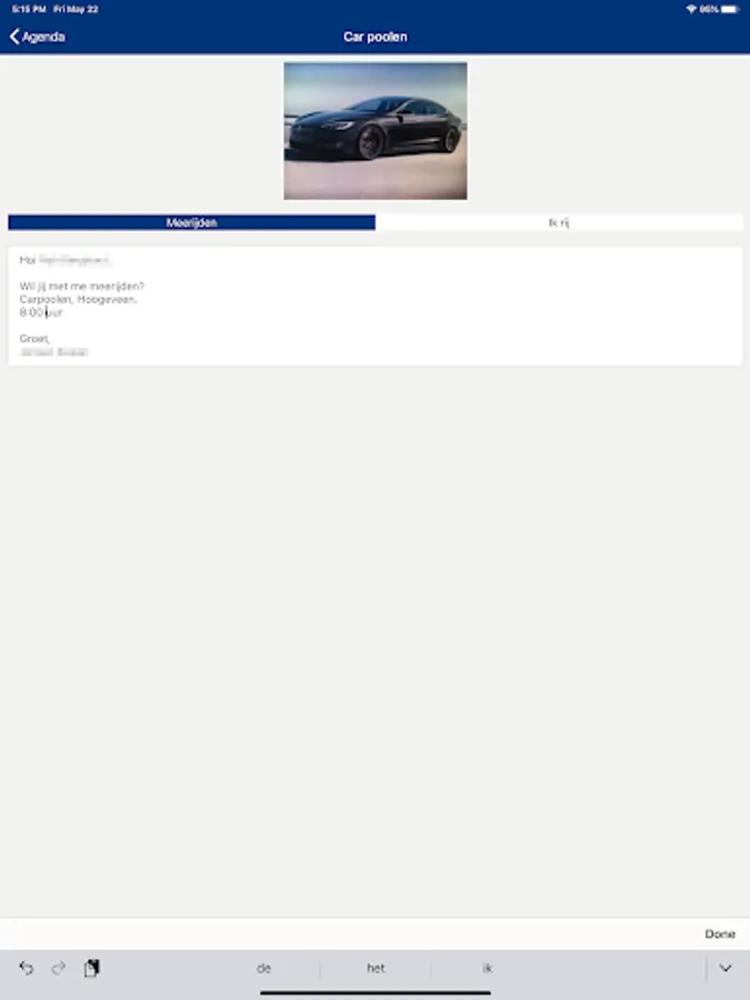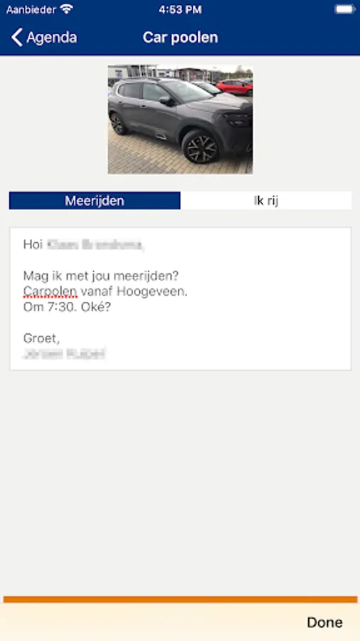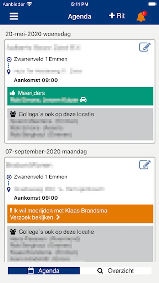 In addition to the planned rides, you can also add a ride yourself and you can ask whether you can ride or if you want to drive yourself. You will be kept informed via notifications