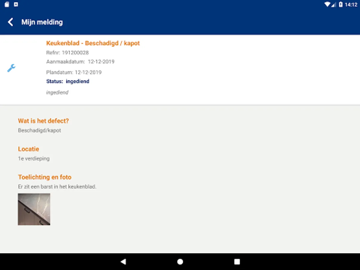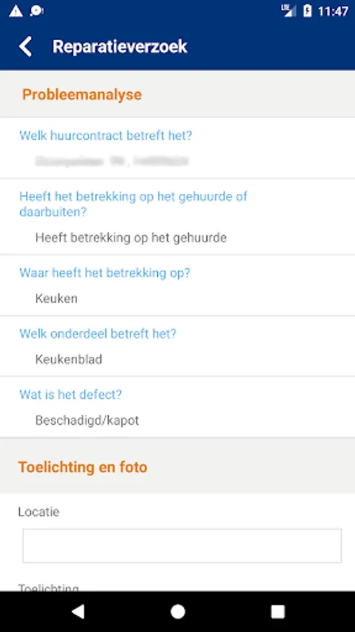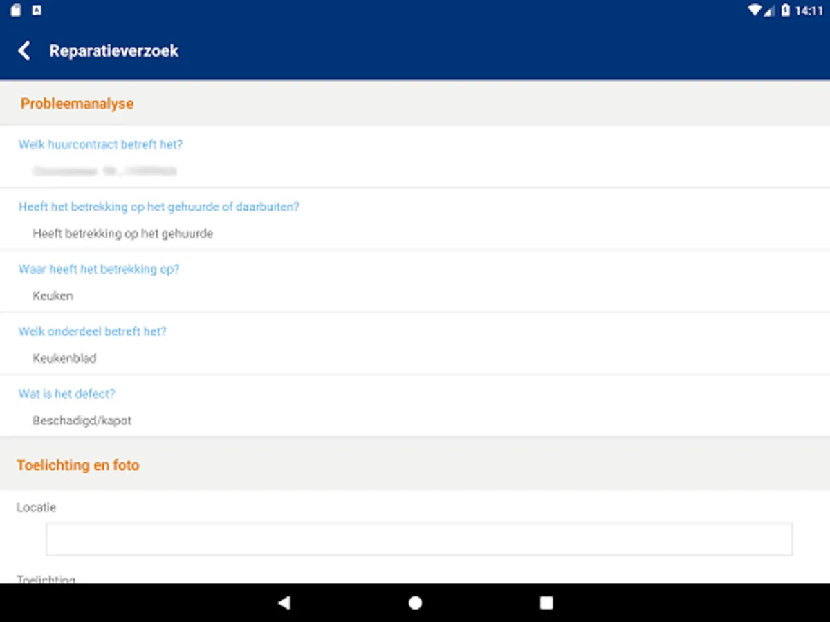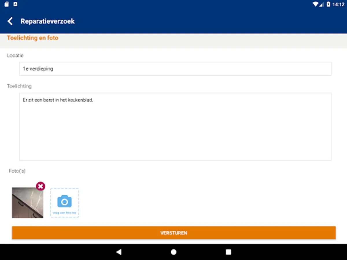 Via a choice menu you can report a repair with additional explanation and a number of photos.