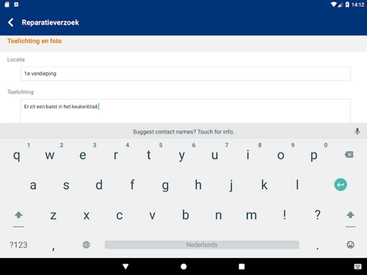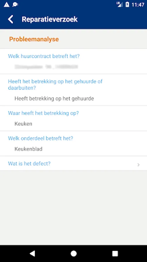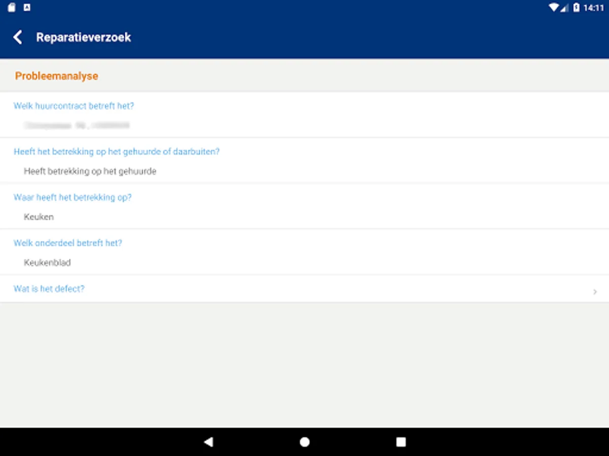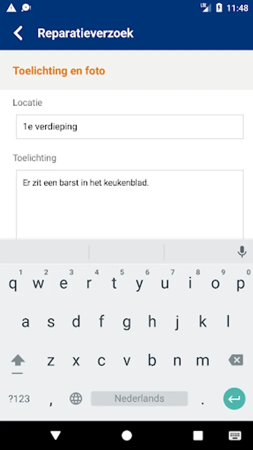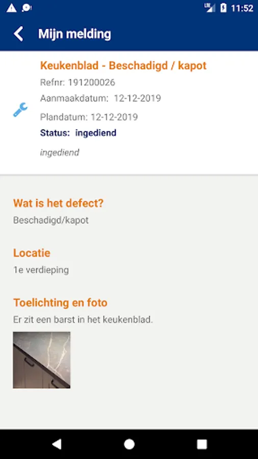 Via a choice menu you can report a repair with additional explanation and a number of photos.