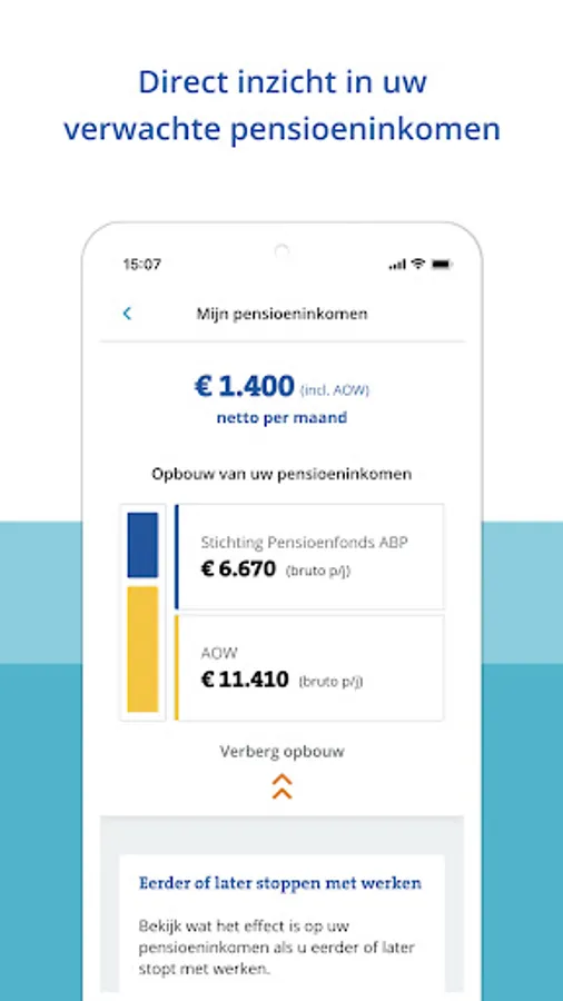 View your pension now with the ABP Pension App. In the ABP Pension app you will find the information that is relevant to you at a glance, right in your pocket.