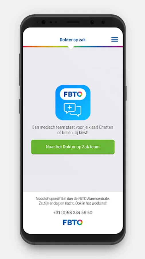 You no longer have to Google. Customers of the FBTO Healthcare Insurance can get a quick answer via the app. Your question will be answered by a medical expert. Ask your question via chat (you can also upload photos) or by telephone.