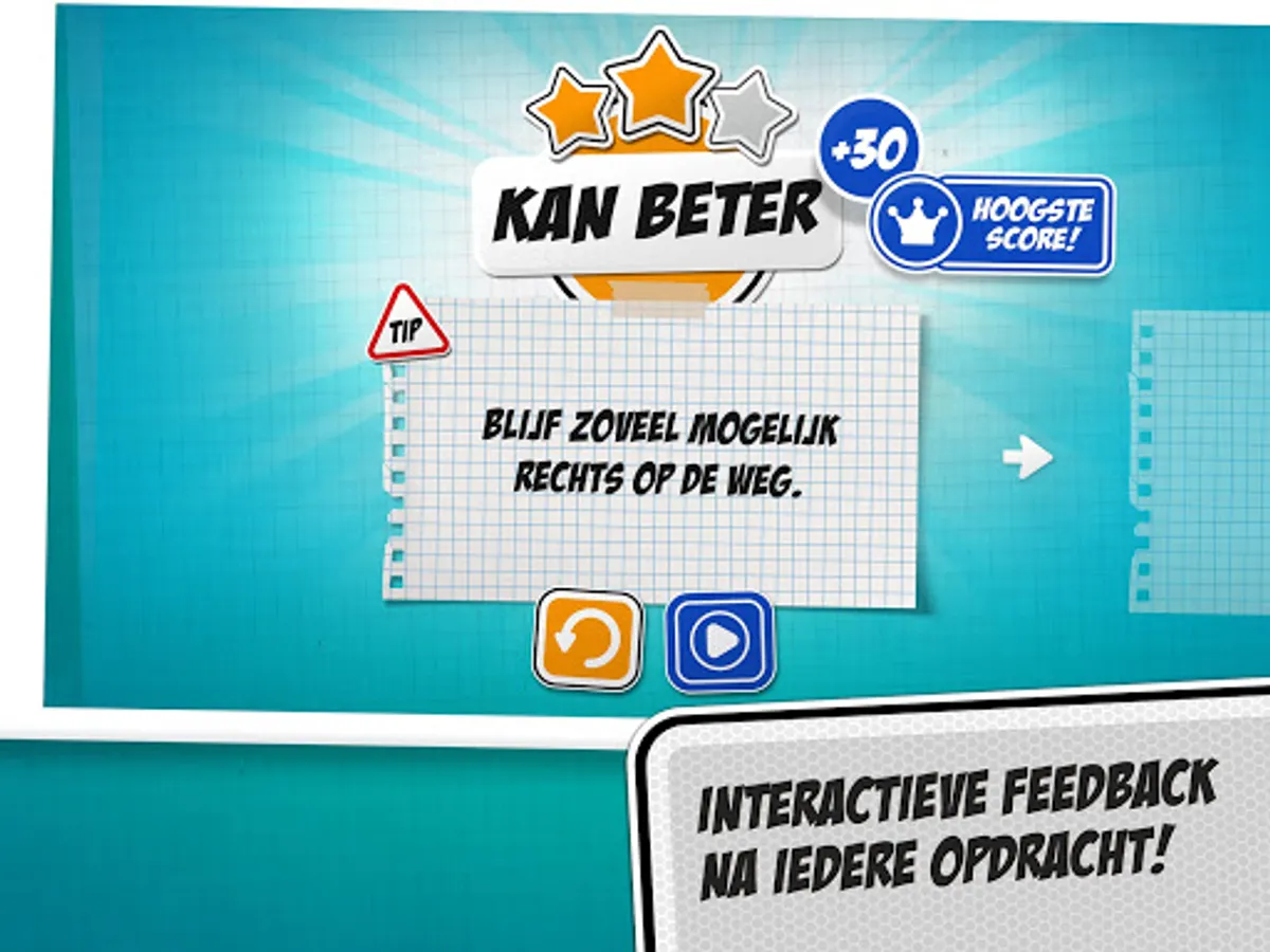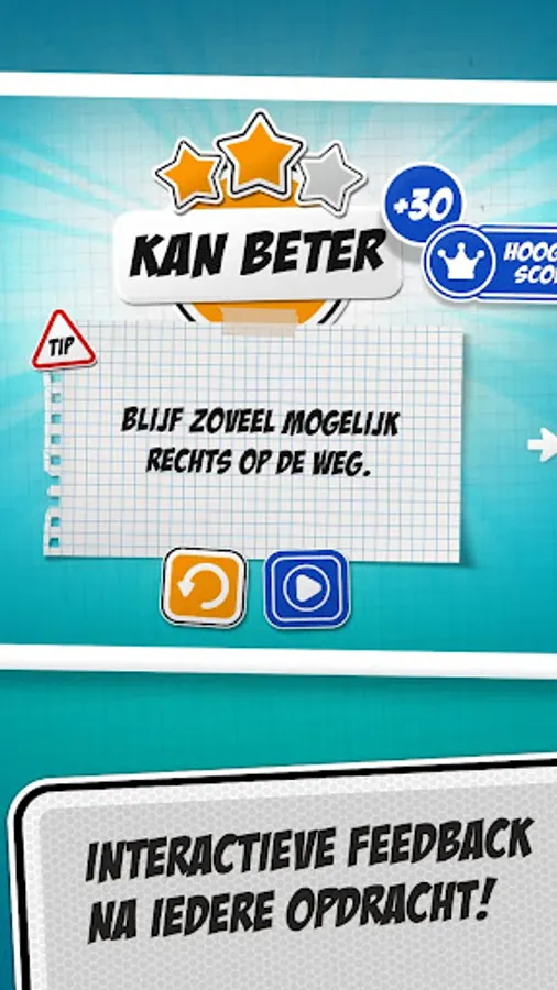 During the assignments you sometimes see smileys and sometimes traffic signs in the picture. You will also receive tips on how to do an assignment better. And you earn points with it.