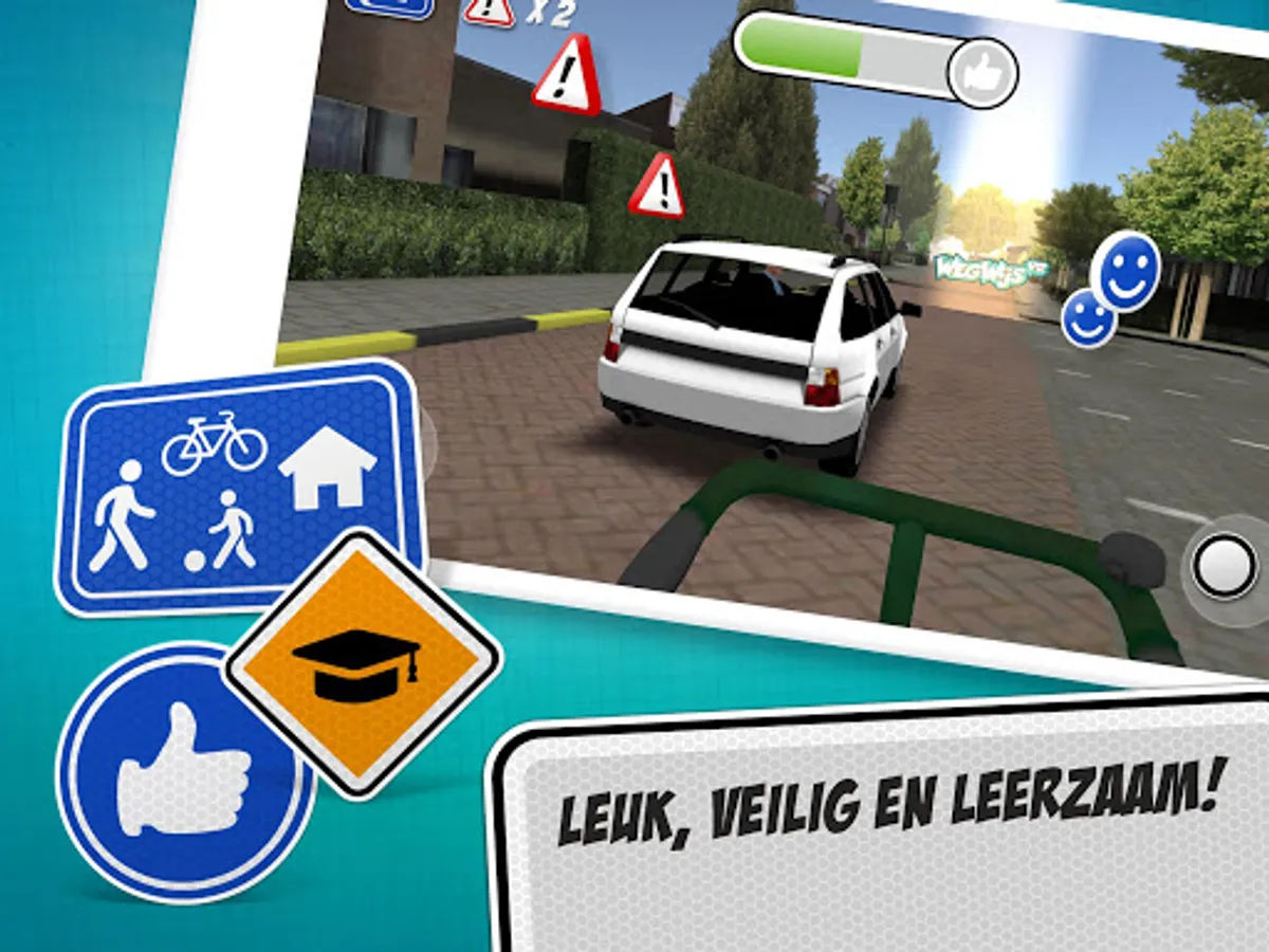 The WegWijsVR app is a game. You receive assignments and can earn points with that. During the assignments you end up in traffic in various simulated situations. If you do it well enough, you can continue. Play and practice often. Then you know when you go to school or house on foot or by bike, much better what you have to do and above all do not have to do.