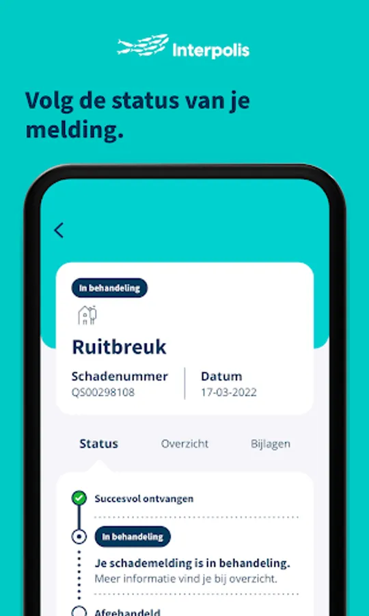 Easily report damage, theft or loss. Take or upload a photo quickly. Interpolis is there for you in the event of damage. This way you focus on what is really important to you.