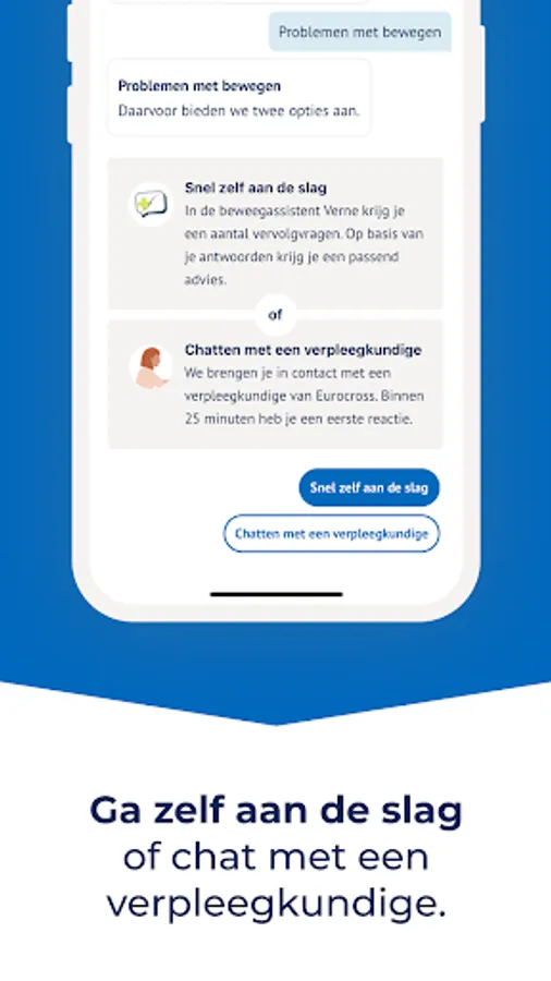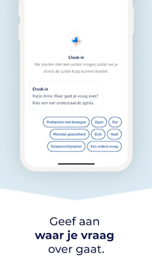 The Zilveren Kruis Wijzer app answers your questions about health. For example, do you have skin complaints, abdominal complaints, questions about moving or are you not feeling well? Start a chat via the Zilveren Kruis Wijzer app. Even if you are unsure whether it is necessary to go to a healthcare provider. At home and on the road. You get advice and help where and when it suits you. During the day, evenings and weekends.