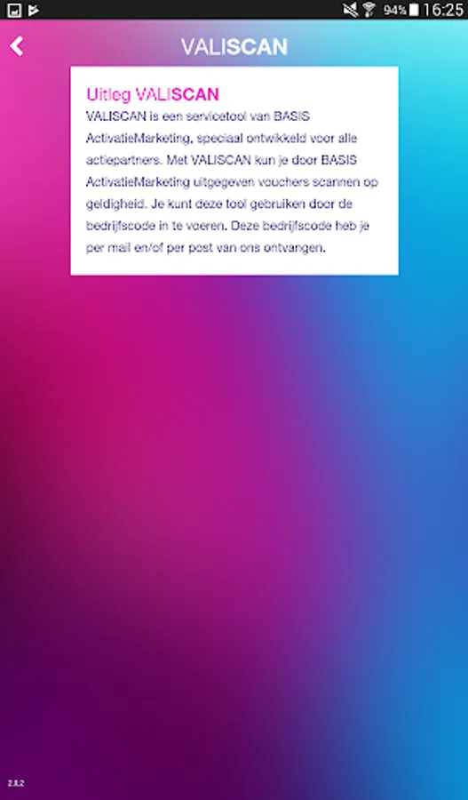 VALISCAN is a service tool for action partners BASIC Activation Marketing. The VALISCAN validate quickly and easily vouchers printed or digitally via the mobile consumer, are shown.