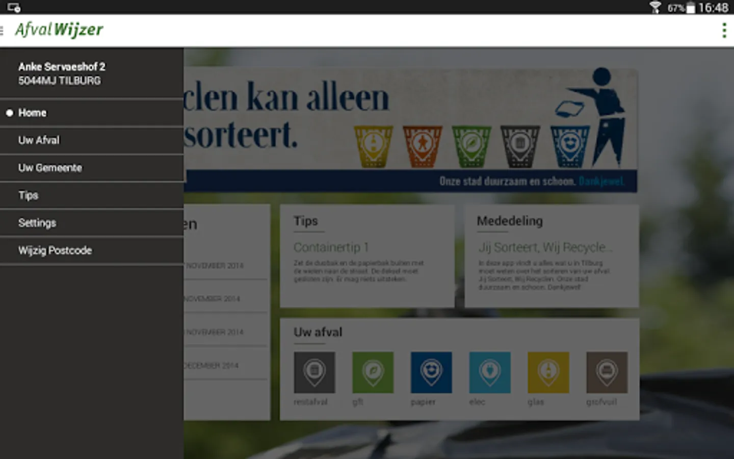 The participating municipalities are committed to making the living environment more sustainable, for example by separating household waste as well as possible and by consciously dealing with raw materials such as paper and plastic. In this app you will also receive tips to separate your waste as well as possible and you can also share tips yourself.