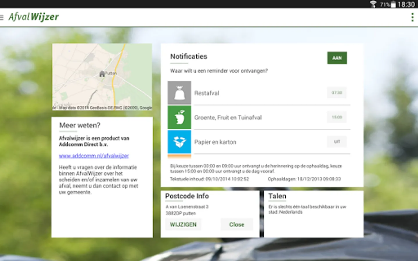 Your municipality wants to organize waste collection as well as possible and optimally informs you as a resident. The traditional waste calendar is a search picture for many people, but with the AfvalWijzer app you can easily view your personalized waste calendar at any time.