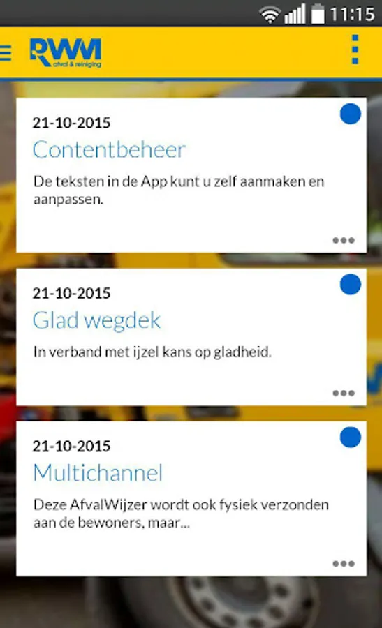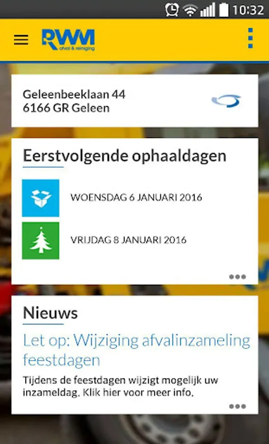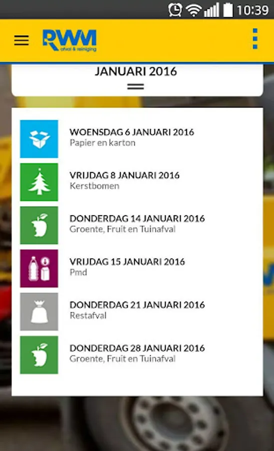 The RWM wants to organize waste collection as well as possible and you as a resident about optimal information. The traditional paper waste calendar for many people is a picture puzzle. With this App you can at any time easily view your personalized waste calendar and receive a reminder at a desired moment.