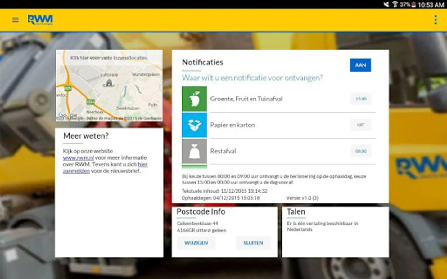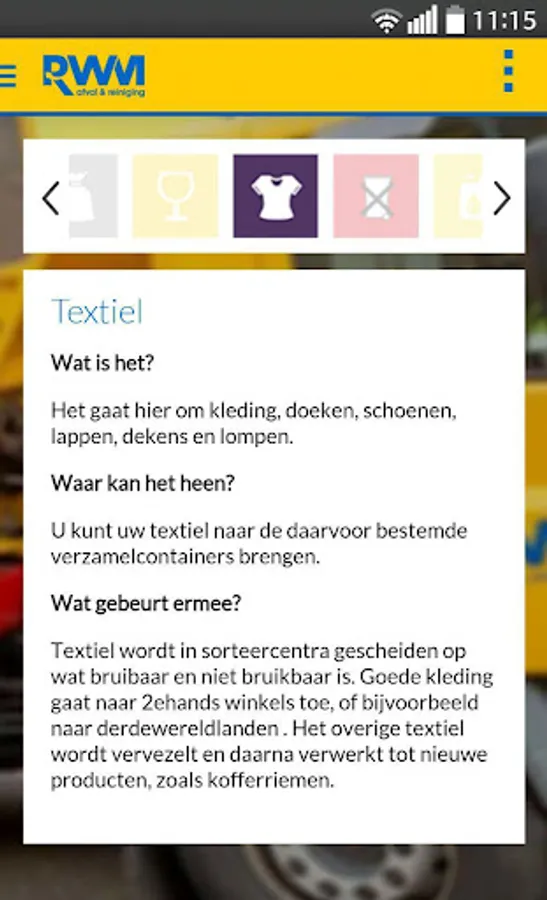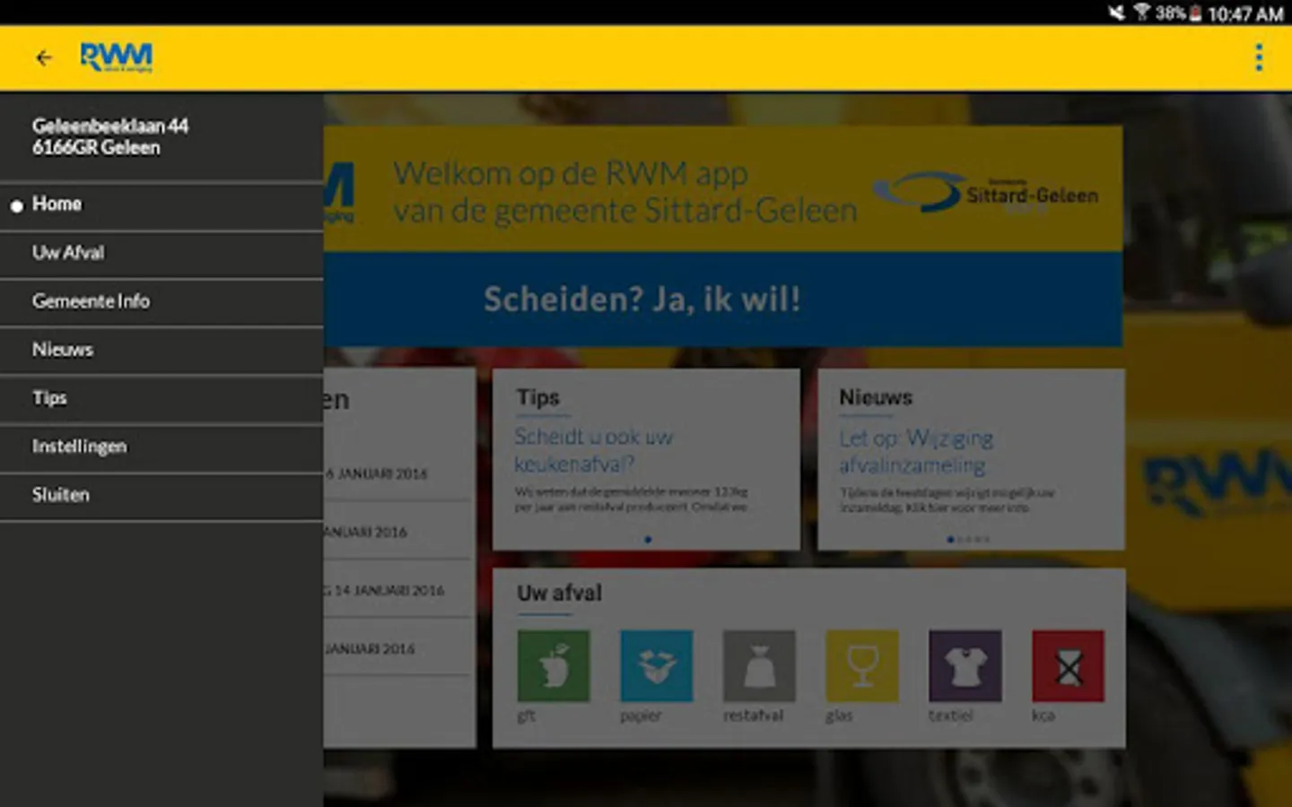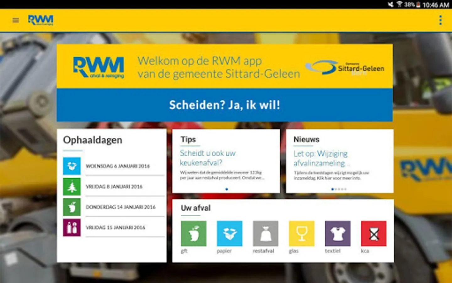The RWM is committed to the preservation of the environment, for example household waste to be separated as much as possible and the conscious use of raw materials such as paper and plastic. This app will also give you tips to separate your waste as possible and you can also share tips.