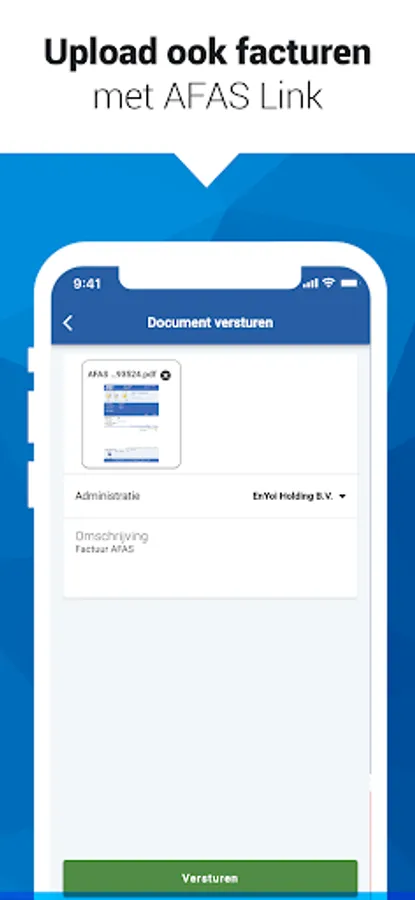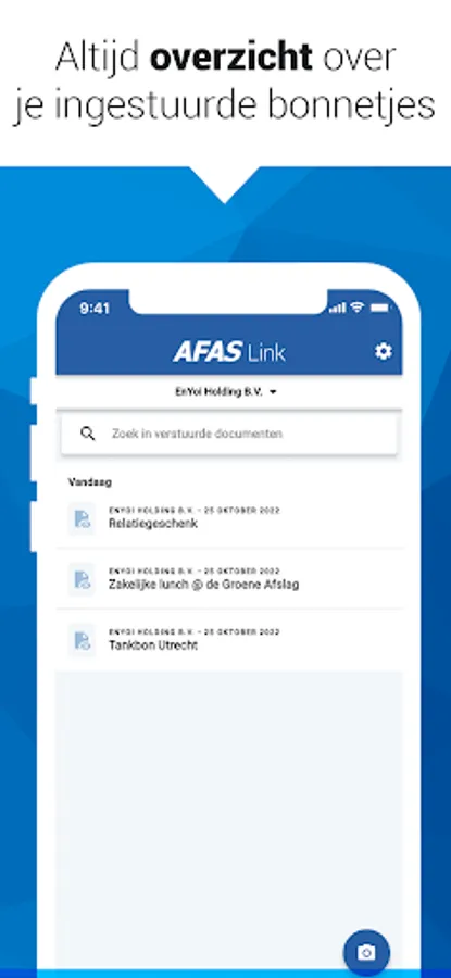 AFAS Link is volledig geïntegreerd met AFAS SB+. In deze app maak je gemakkelijk een foto van je bon of upload je je factuur. Deze stuur je daarmee direct naar je accountant. Lekker makkelijk!