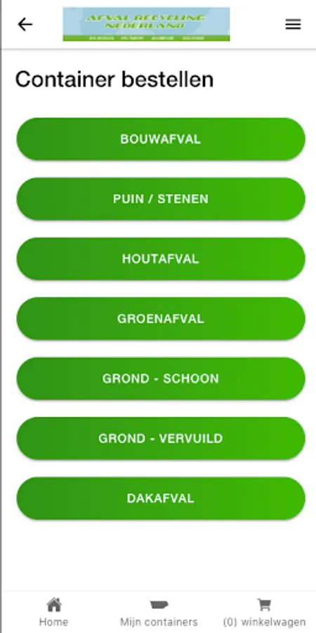 The webshop app of Afval Recycling Nederland. Through this app, customers can easily order a waste container with a few clicks.
