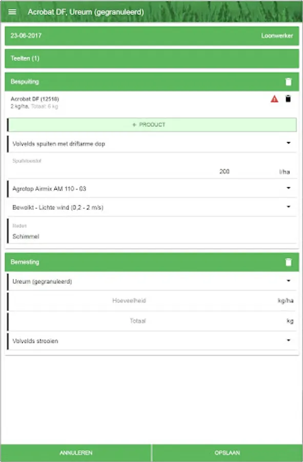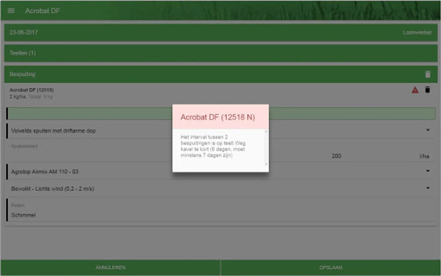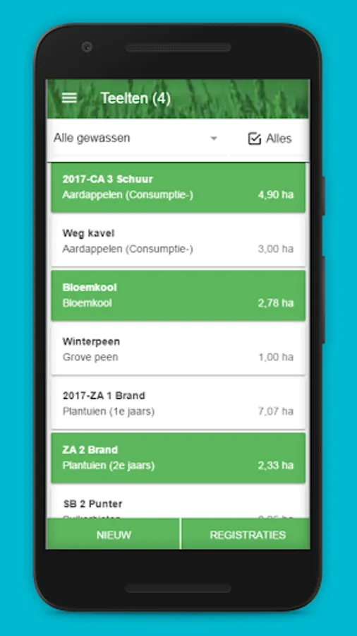 The CropVision app for smartphone or tablet is an extension of your CropVision culture registration program. With the app you can always view, edit or add a registration. You can see the registrations you made yourself but also the registrations made by other employees in the field.