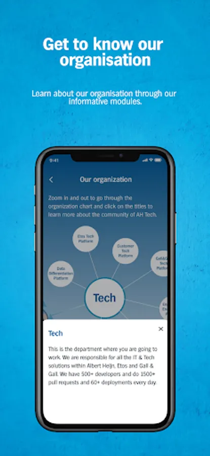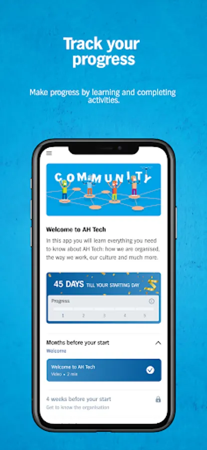 The Welcome Tech App aims to engage new colleagues from AH Tech from the moment they sign their contract until their first workday. Through the app, new colleagues are offered a more efficient, fun and interactive preboarding process. The app automatically unlocks new information, videos and quizzes about the organisation, the culture and the way of working in the weeks before new colleagues start.