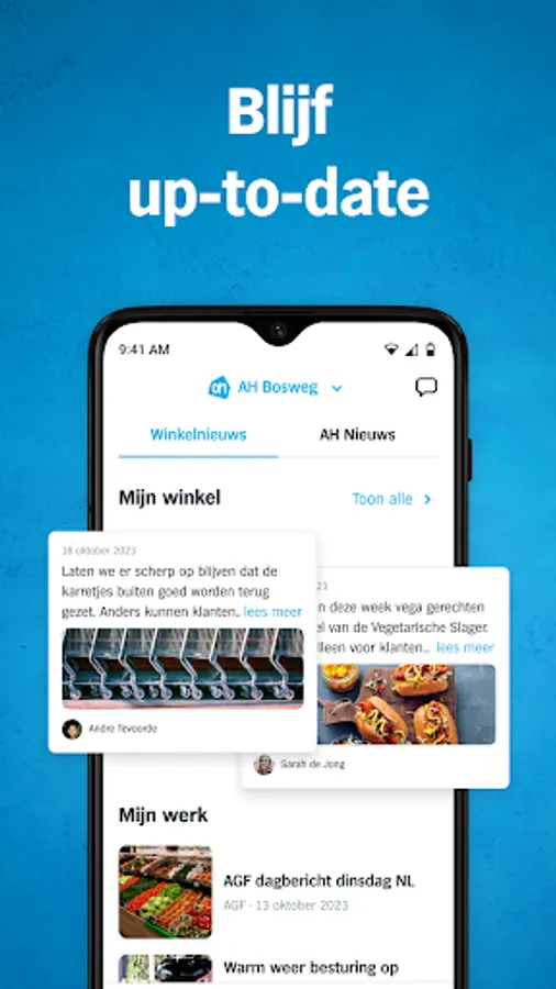 @AH is the personal app for Albert Heijn employees. With @AH you can, among other things, view your schedule, chat with colleagues, stay informed of the latest news about Albert Heijn, and much more.