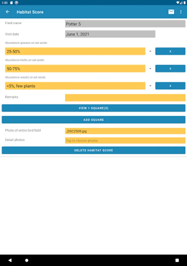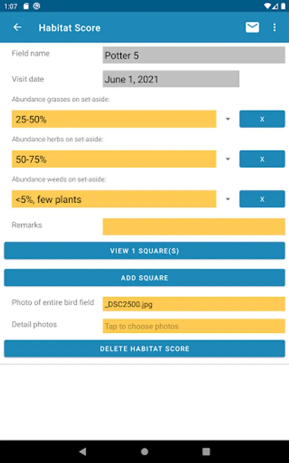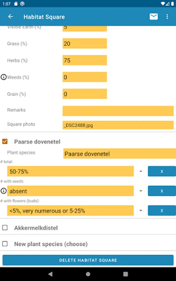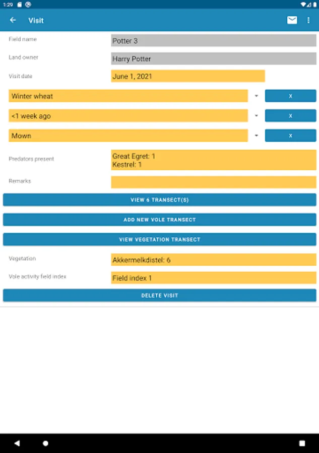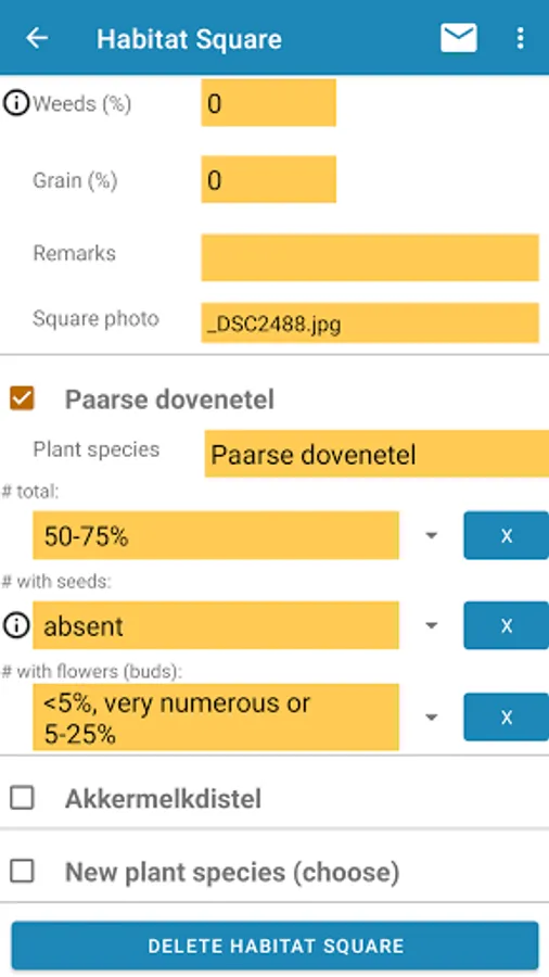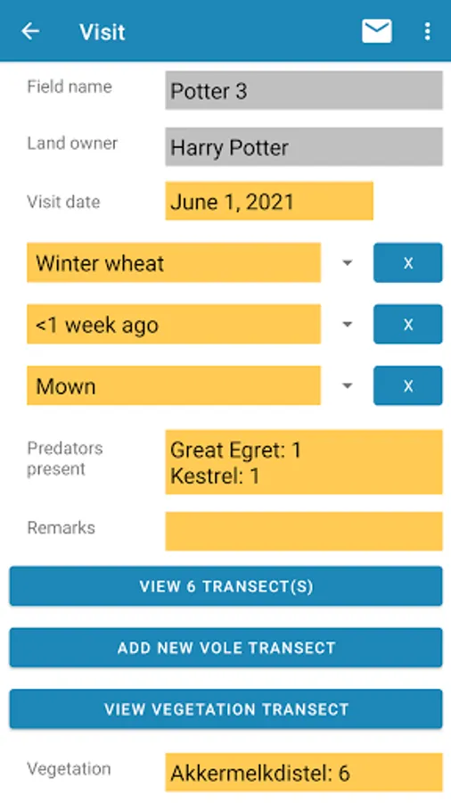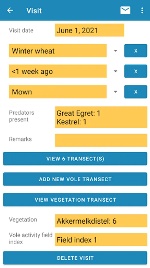 Field Monitor is an easy way to collect ecological data on vole abundance, vegetation structure and plant species composition on farmland, parameters that are important to both farmland birds and their researchers. During transect counts Field Monitor automatically tracks the distance covered. In addition, Field Monitor also enables you to monitor voles and vegetation per square meter. Registered data can subsequently be exported to your email address at any desired time.