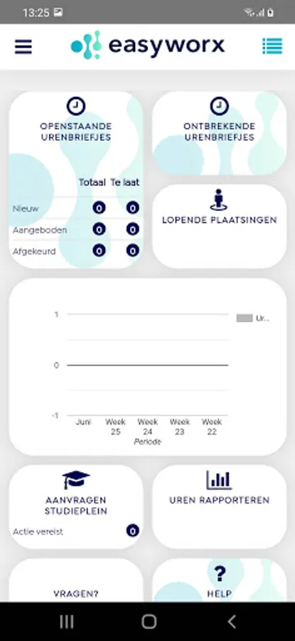 The app offers all known functionalities of online time registration, including submitting and approving hours, downloading payslips and reporting changes.