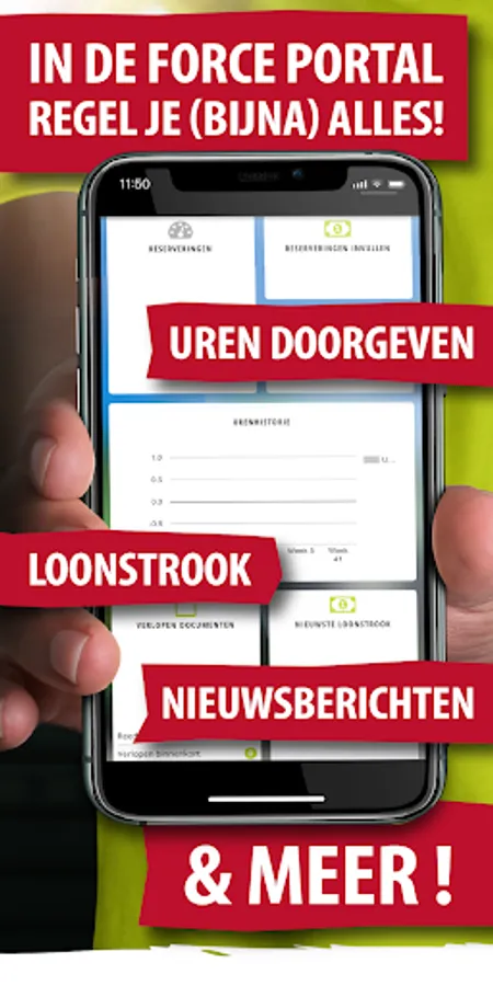 As a flex worker you can easily pass on your worked hours online. You can view your time sheets and payslips in the app and you can also find other documents such as your contract in the Force Portal. Thanks to the push notifications you will not miss anything.