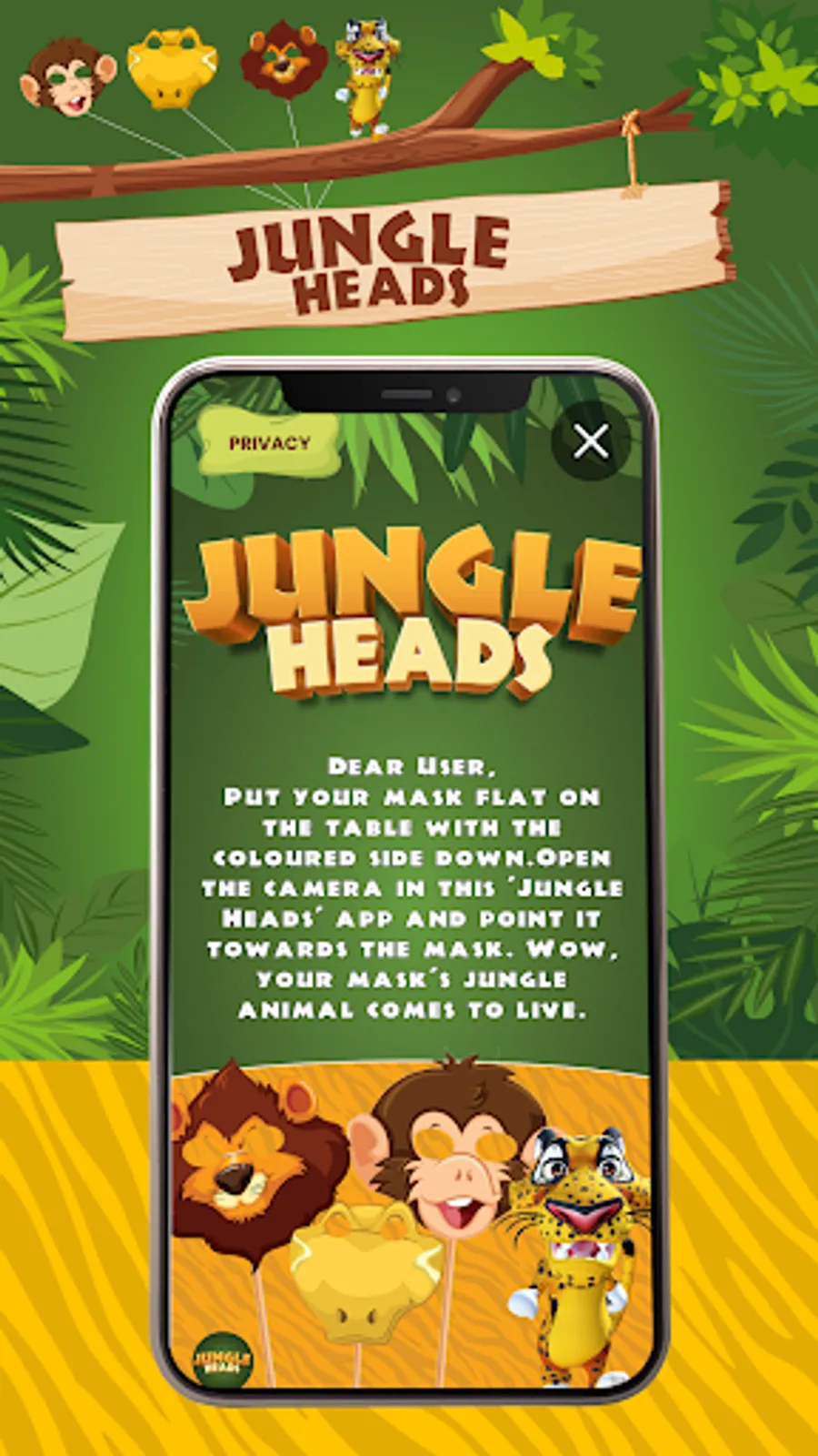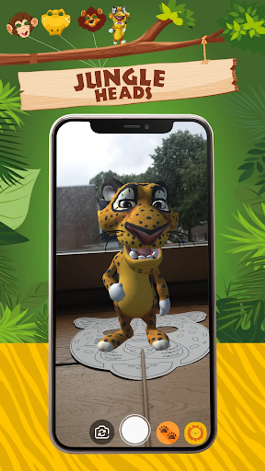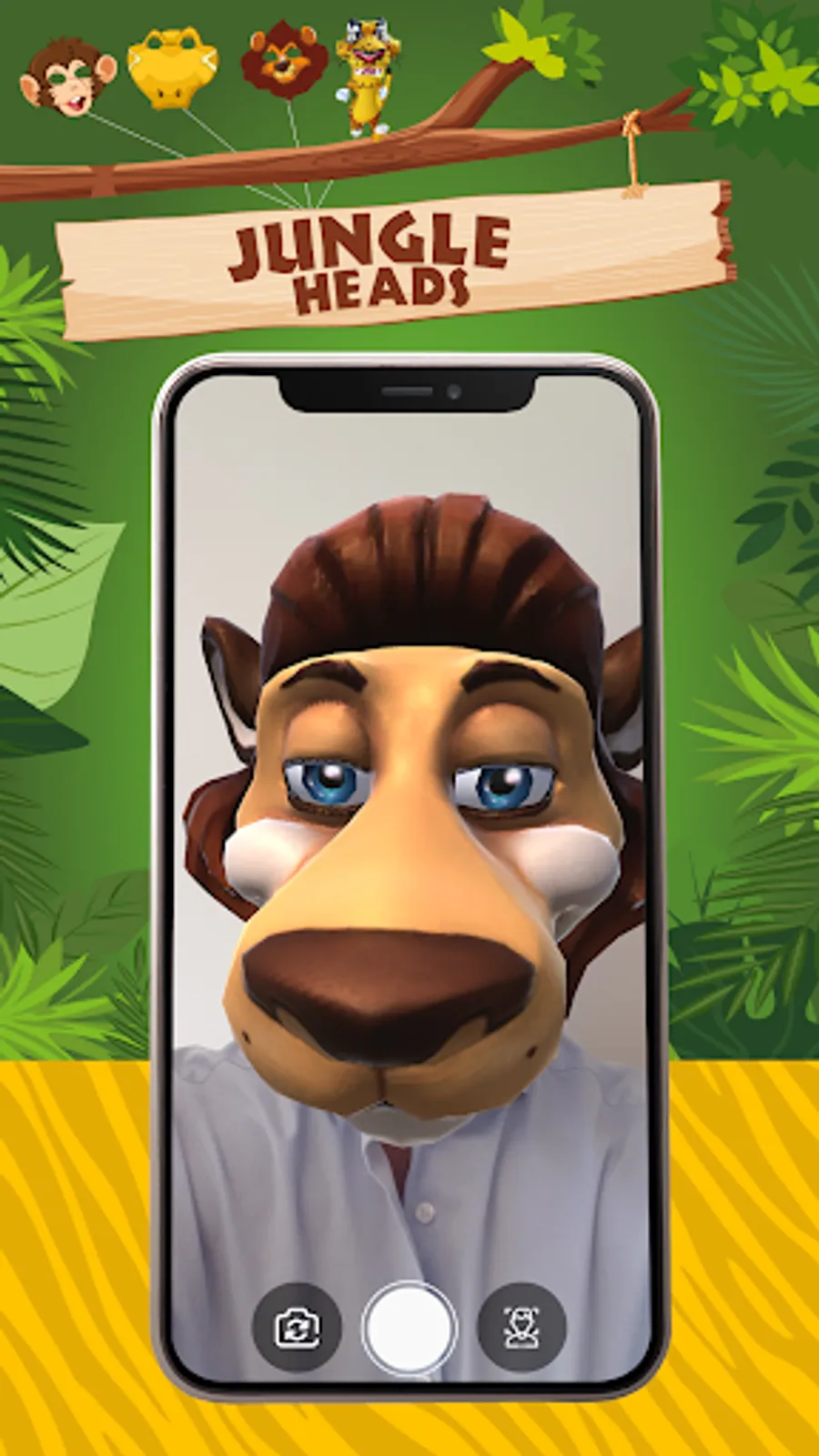 · Open the camera in the 'Jungle Heads' app and aim the camera toward the mask.
