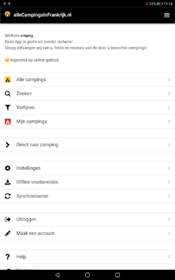- App works together with the Website of all CampingsInFrankrijk.nl