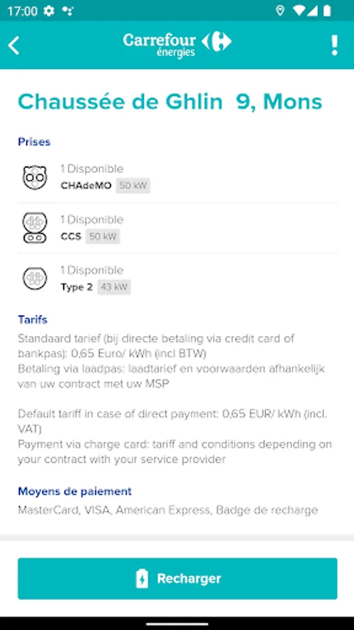 Locate Carrefour Energies charging station stations and partner terminals