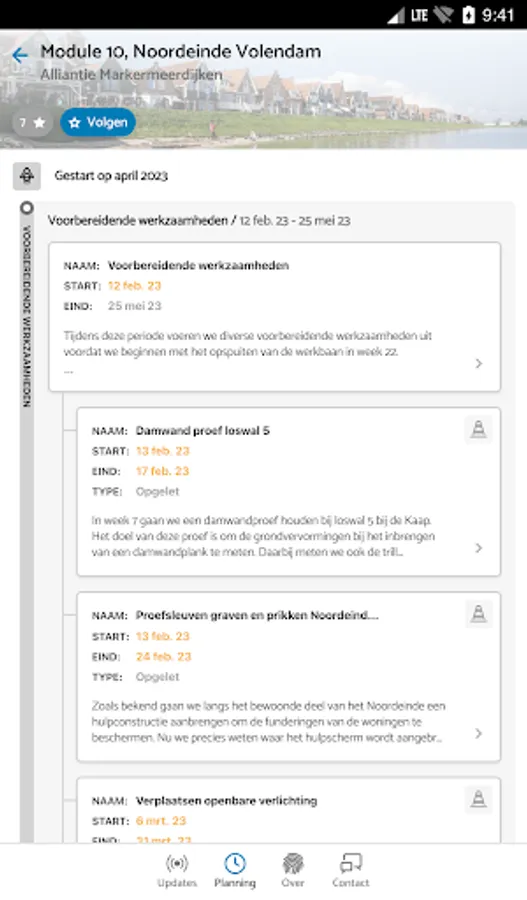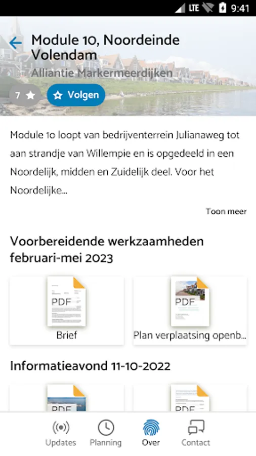 Would you like to know what we do in your area? Then download the Markermeerdijken app, follow the module you live or work on and receive automatic updates when work is taking place on the dike in your area.