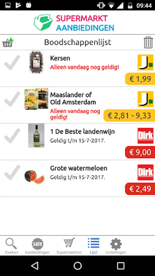 - A clear shopping list tracking interesting offers.