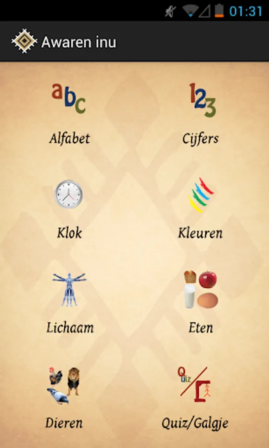 Awaren Inu is a free app to learn Tamazight (Berber). In this version you will learn alphabet, numbers, colours, clock, animals, body parts and food.