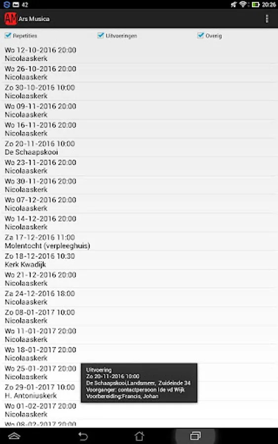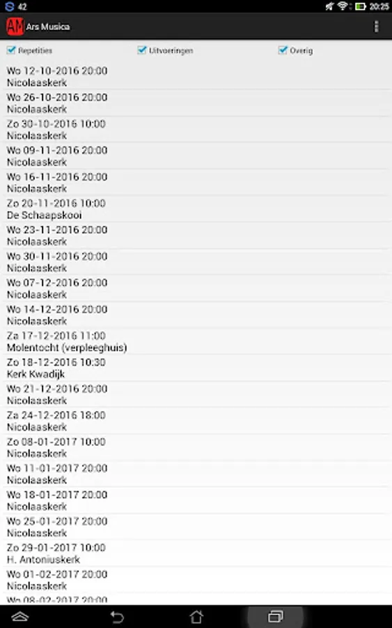 Shows the calendar of liturgical choir Ars Musica in Purmerend