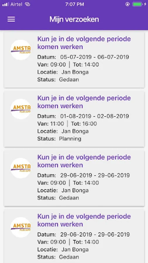 De Amsta flexapp communiceert op simpele en snelle wijze werkverzoeken tussen planner/manager en aangesloten medewerkers/poolers. Deze flexapp kan alleen worden gedownload door uitgenodigden.