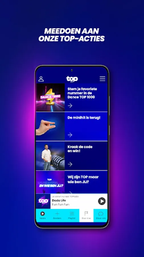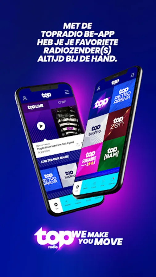 TOP = We Make You Move! With the TOPradio BE app you always have your favorite radio station(s) at hand. Listen to TOPradio and all our online channels, participate in TOP promotions, view our playlists and send free messages to the studio.
